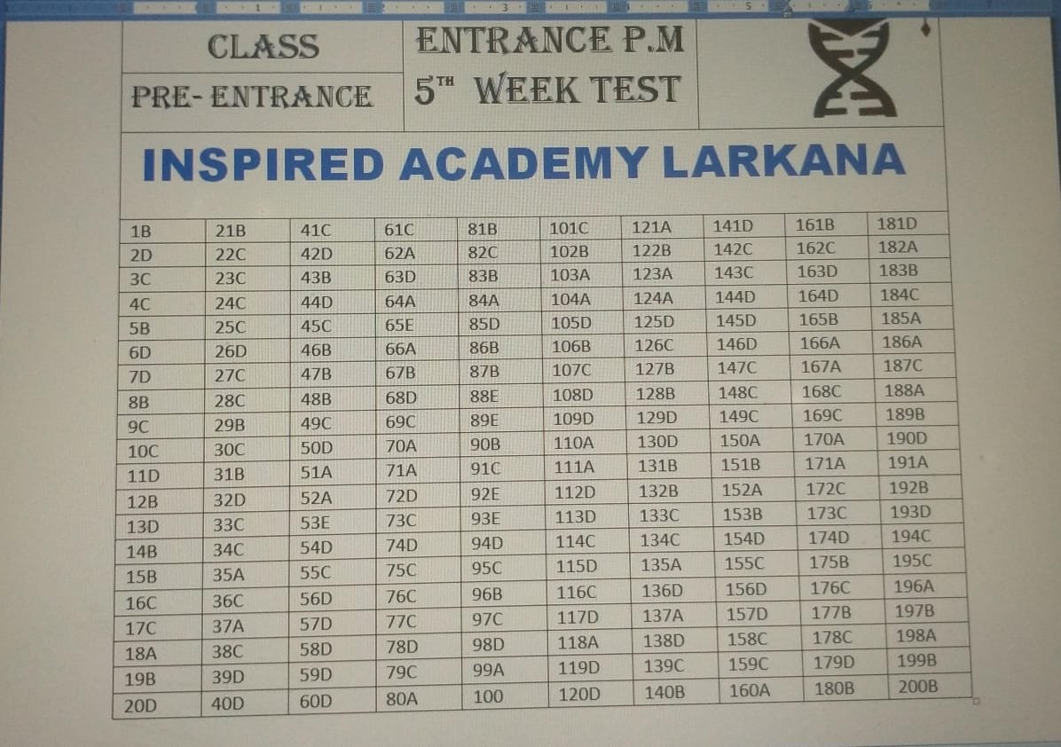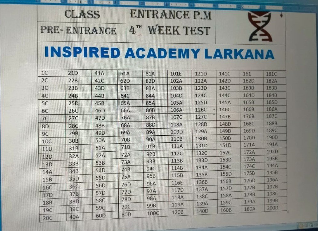 Inspired Academy Larkana Pre Entry General Tests Mdcat Session 24